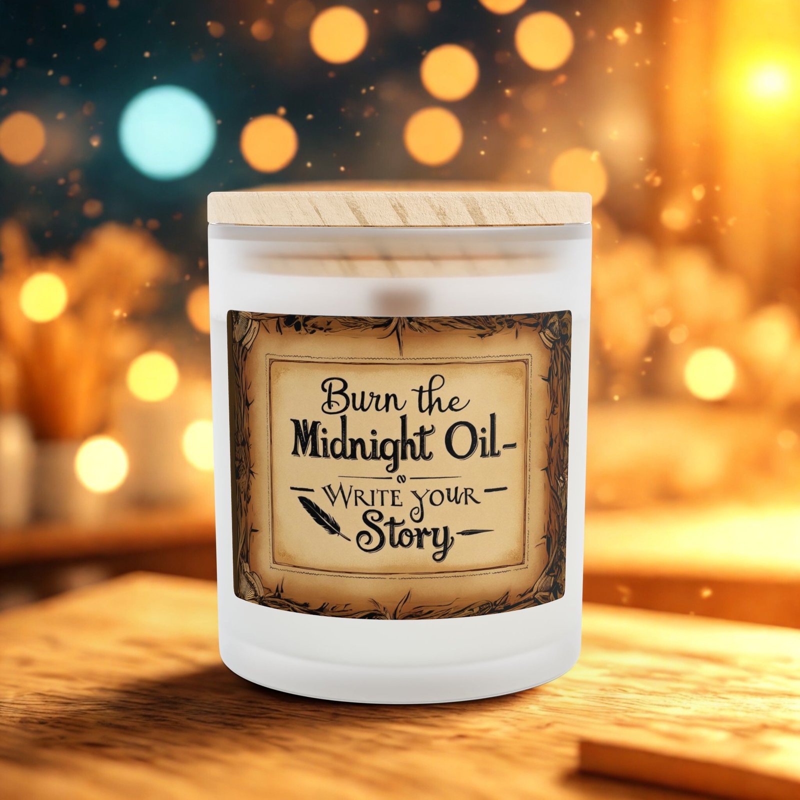 Inspirational Frosted Glass Candle – “Burn the Midnight Oil” – 11oz